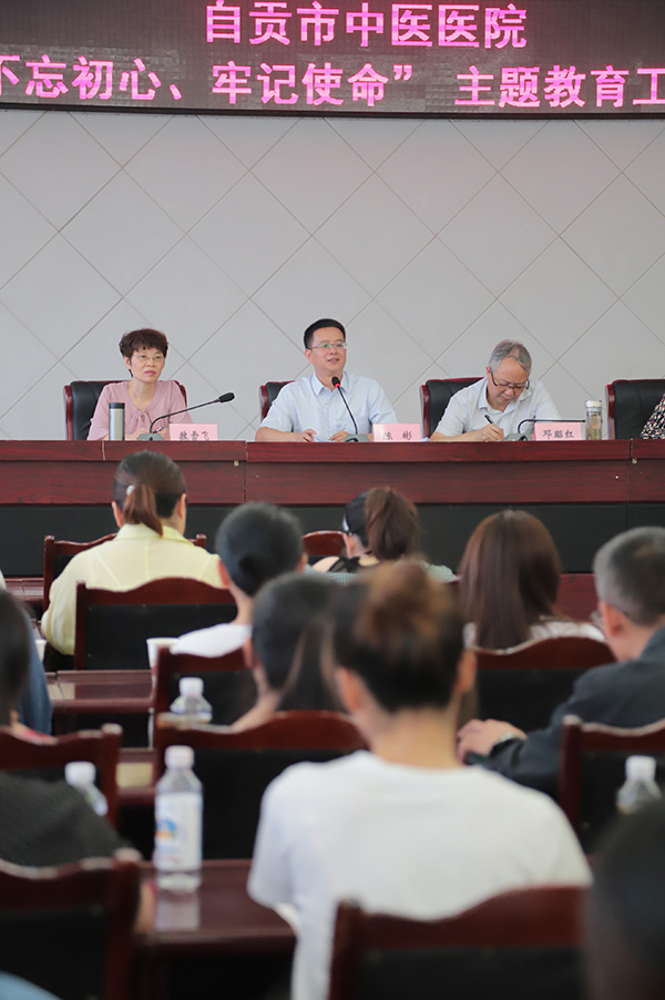 9月23日,自贡市中医医院召开“不忘初心、牢记使命 ”主题教育工作会,学习贯彻中央、省市委和市卫健委主题教育工作会议精神,对全院“不忘初心、牢记使命”主题教育作安排部署。院领导、职能部门负责人、科主任、护士长、党支部书记、支委,共计90余人参会。市卫健委主题教育第三督导组组长陈彬等出席会议并做现场指导。