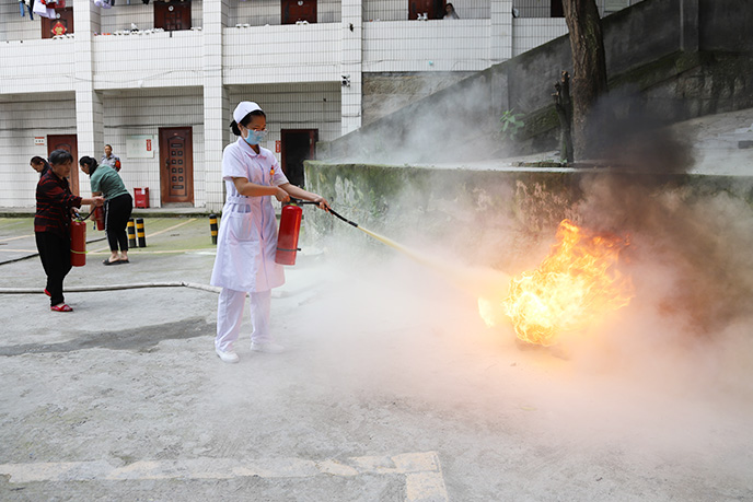 讲座结束后,参训人员在医院实习生宿舍进行了消防疏散演练和灭火培训。