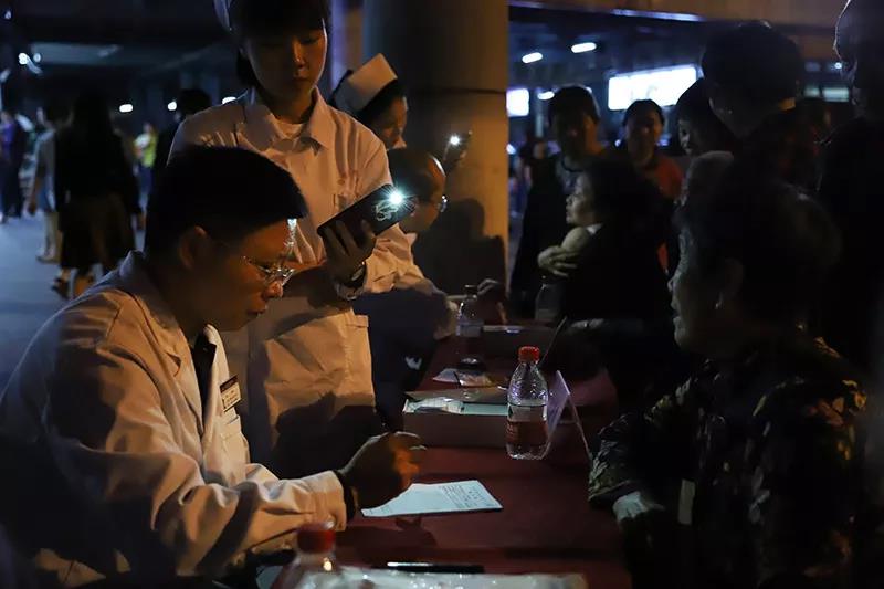 随着时间推移,夜幕悄然降临,而义诊区内却依旧是热火朝天的景象。光线不足,医护人员用手机当照明;肚子饿了,喝口水继续义诊。“前来咨询的不是患者就是患者家属,他们相信我们才会前来,作为医护人员,又怎能辜负患者的信任而敷衍了事!”即便已连续工作10多个小时,即便早已饥肠辘辘,但我们的医护人员没有一个叫苦,没有一人叫累,直至将最后一名前来咨询的市民满意送走。
