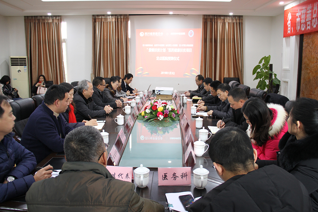 1月3日,四川省慈善总会、自贡市慈善总会“爱善扶贫计划”项目定点医院授牌仪式在市中医医院二会议室举行。市中医医院正式成为项目定点医院,并明确爱心志愿者医生为项目提供服务,同时指导志愿者在院内开展相关宣传活动,力争能让更多的患者从项目中受益。仪式上,项目志愿者还宣读了誓词。