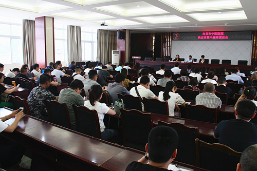 5月8日下午,我院在学术报告厅组织召开了2018年医药器械供应商集中廉政谈话会。医院领导班子成员、相关职能部门负责人以及供应商代表等60余人参加。会议由副院长魏雪飞主持。