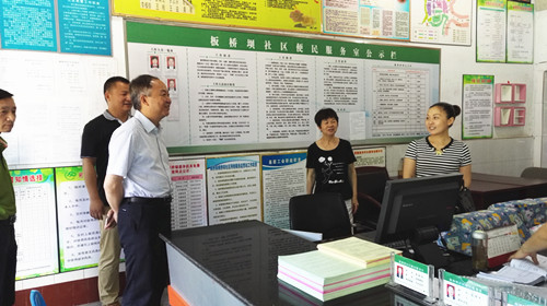 在板桥坝社区,邓院长详细了解了医院选派的第一书记周杰工作开展情况,同时就开展好相关工作听取社区工作人员对医院的意见建议。当了解到社区工作在第一书记到任后开展地有声有色,邓院长高兴地表示,有什么需求可以和医院沟通,医院将尽量协调解决,同时发挥好行业特色,多做为社区居民健康有益的事情。