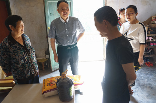 在该社区王高明家中,邓院长详细了解了其家庭状况,当得知不久前王老伯因肺气肿导致生活不能自理,依靠有精神障碍的女儿照顾后,邓院长表示,市中医医院可以为王老伯开通绿色通道,为其提供相应的健康帮扶,以减轻家庭的经济负担。同时,邓院长在现场与社区干部协商积极为王老伯一家争取相关政策扶持,提高家庭收入,改善生活条件。 "王老伯,今后生活中遇到困难时,可以联系我们或社区,我们将尽力帮助你们协调解决。"邓院长握着王老伯的手说道。王老伯感激地表示,感谢党和政府的好政策,感谢市中医医院领导上门来看望,他一定保重好身体,让生活越来越好。