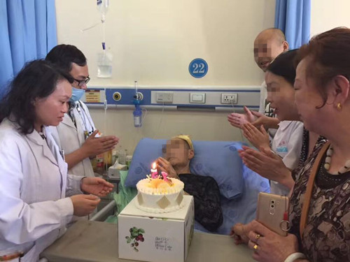 "候公公,祝您生日快乐!"、"老人家,生日快乐"这一声声祝福声洋溢在我院肿瘤科22床病房内。