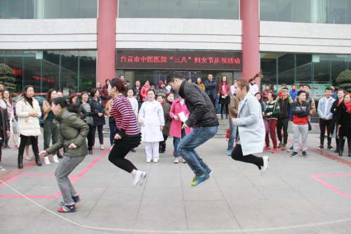 在"三八"国际妇女节来临之际,我院为了提高职工的身体素质,丰富医护人员业余文化生活。3月7日下午,医院举办了庆祝"三八"妇女节趣味活动。医院领导班子成员及全院各科室职工代表参加了活动。