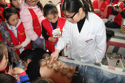 "小记者"们一抵达医院,便被浓郁的中医药文化氛围深深吸引,稚气未脱的脸上满是好奇和兴奋,大家一边仔细聆听讲解员的介绍,一边在笔记本上认真记录。医院门诊大厅内一块块精雕细琢的中医药文化浮雕、中医名家雕塑和制作精美的中药标本、各式各类的针灸和火罐等中医诊疗器具,整洁干净的现代化诊疗环境与古色古香的中医药文化元素,让"小记者"们印象深刻。在医务人员的带领下,"小记者"们先后参观了急诊科的急诊急救设施设备,以及针灸、推拿、拔火罐等中医特色治疗技术。最后,"小记者"们还观摩学习了中医八段锦、五禽戏等养生操。