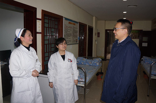 每到一处,院领导都亲切地与值班的医务人员和行政后勤人员交谈,问寒问暖,给他们拜年。值班的医院职工纷纷表示,感谢院领导给他们带来了关怀和温暖,他们一定坚守岗位,全力以赴,尽职尽责,确保医院度过一个平安、祥和、温馨、幸福的春节。