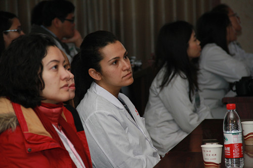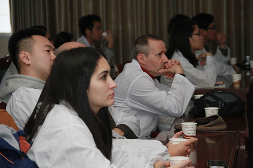 成都中医药大学国际教育学院副院长陈媛代表参访团留学生感谢医院精心周到的接待和安排,她希望借此机会提高留学生们对中国文化,对中医药的见解,加深院校之间的交流合作。随后,留学生们观看了医院宣传片,在医院老师的教授下学习感受了“项痹运动保健操”等医院自创中医保健操。留学生们看得入神、学得仔细,现场被轻松、愉快的气氛所包裹。