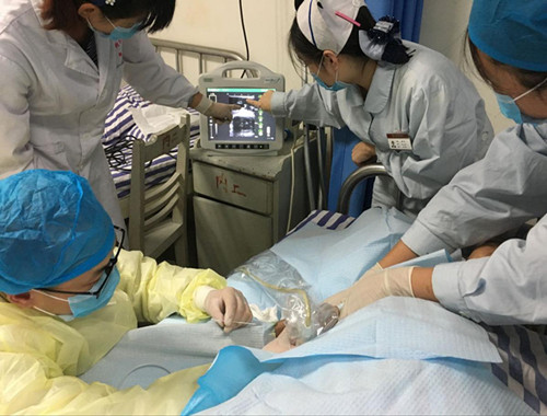 近日,我院中西医结合(肿瘤、血液)科成功开展了院内首例经B超引导下配合塞丁格技术行PICC置管。据悉,该项技术为输液治疗的患者提供了一条无痛性治疗途径,因其操作简单、安全、留置时间长,而被称为“患者的生命线”。