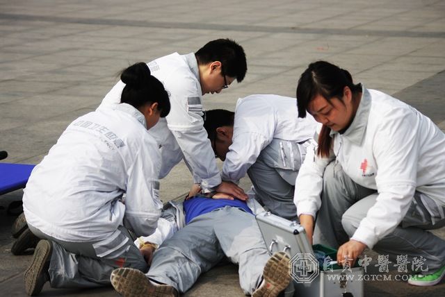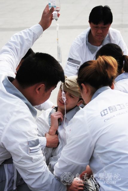 “伤员出发”、“医疗救护分队出发!”18日上午,随着指挥员一声令下,三名战士在战场上受伤,整齐着装的自贡市中医医院应急救护分队民兵携带医疗箱、担架等实战救援装备呈S型路线迅速前往模拟战场,对伤员进行医疗救护。这是在自流井区2014年综合应急演练及专业救援民兵组织整顿点验大会的战场救援时的一幕。我院战伤救护分队队员向在场人员展示了战伤救护中的止血、包扎、固定、徒手心肺复苏和搬运,准确及时地救护工作获得在场人员的好评。