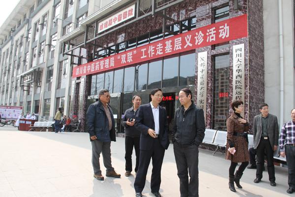 为认真贯彻落实省委、省政府《关于建立领导联系指导市(州)和基层工作制度的通知》精神,3月26日,省中医药管理局杨殿兴局长、罗建书记带队,由省中医院、泸州医学院附属中医院、省中西医结合医院,自贡市中医院、内江市中医院专家组成的医疗队赴威远县城开展了“双联”工作走基层义诊活动。