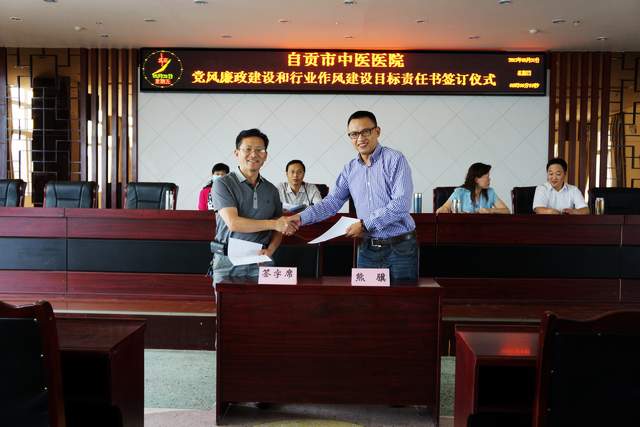 随后,杨院长通报了2012年以来行业作风建设目标任务考核情况,内一科获得一等奖,针灸一科、内四科获得二等奖,妇产科、儿科、感染性疾病科获得三等奖,并为获奖科室颁发了证书。熊书记与临床、医技科室和职能部门代表签订2013-2014年度党风廉政建设及行业作风建设责任书。