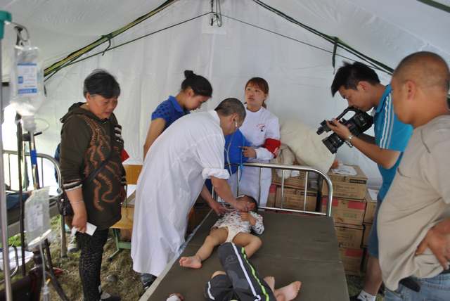 4月27日上午12:00,我院儿科主任、副主任医师韦汉才医生在副院长高冰带队护送下,安全到达了芦山地震灾区宝兴县灵关镇的宝兴县中医院,一到灾区,他们看到宝兴县中医院的所有房屋在地震中严重受损,医务人员全部都在帐蓬里开展工作,条件十分恶劣,但医务人员仍坚持在帐蓬搭建的临时医疗点上,我院前往的人员无不都被宝兴县中医院职工在这么恶劣条件下工作的精神所感动。