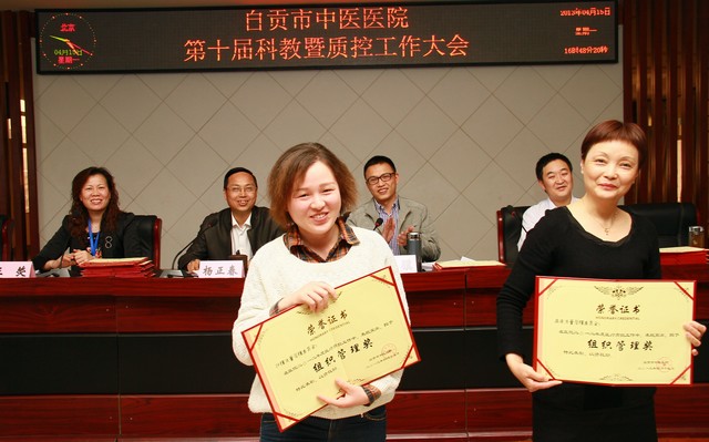 会上,副院长高冰围绕科技创新、人才培养、学科建设、临床教学以及医疗、护理、药事、院感质量控制等方面对医院2012年科教和质控工作做了回顾性总结。党委书记熊骥宣读了《自贡市中医医院关于二0一三年科教暨质控工作大会有关奖励的通知》,大会对5个科研立项课题、3项专利发明、11项新技术新项目、2个国家级重点专科、1个市级重点专科、168名学术论文发表者、14名优秀教师以及质控工作优秀组织和个人进行了表彰。