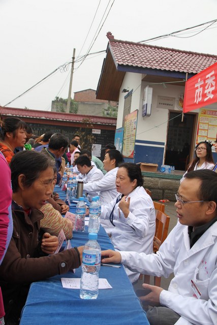 医院积极响应市委办公室号召,高度重视此项活动,义诊队伍阵容庞大,由杨正春院长、熊骥书记亲自带队,省名中医高冰、内、外、妇、儿、针推、骨伤等相关科室的9名主任级专家参与。义诊队伍为当地村民逐个问诊、身体检查、普及防病治病知识,杨院长要求医务人员:“要问得仔细、讲得明白,使盘石村的每位村民都能受益”。