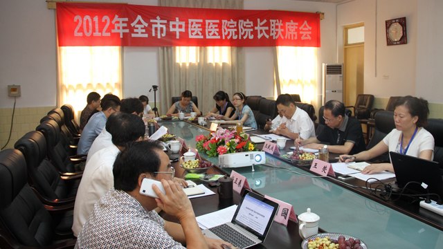 8月10日,在医院会议室召开了本年度全市中医医院院长联席会,会议由市卫生局中医科副科长李俊宏主持,市卫生局副局长赵忠明、市中医医院、自井区中医医院、贡井区中医医院、富顺县中医医院、荣县中医医院院长出席会议。
