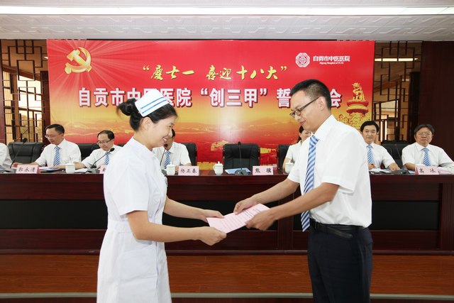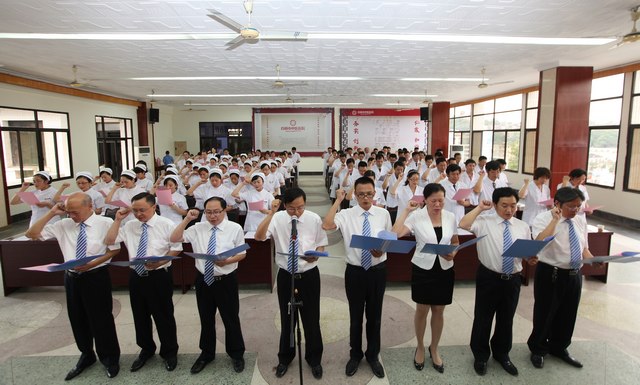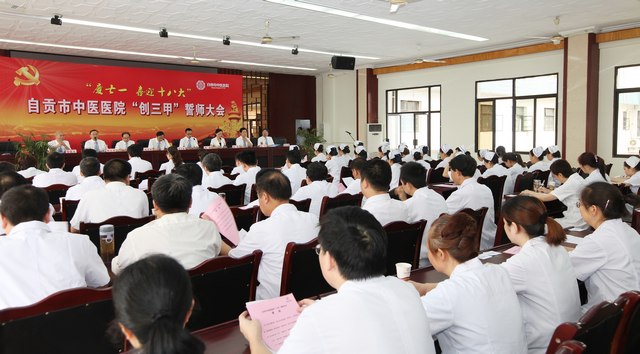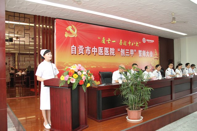 2012年6月30日,我院在学术报告厅召开了“庆七一,喜迎十八大”暨“创三甲”誓师大会,吹响了实现“三甲”医院目标的号角,这次会议标志着我院创“三甲”工作已进入到紧张的最后冲刺阶段。全体院领导及党、团员代表100余人参加了会议,大会由院长杨正春主持。