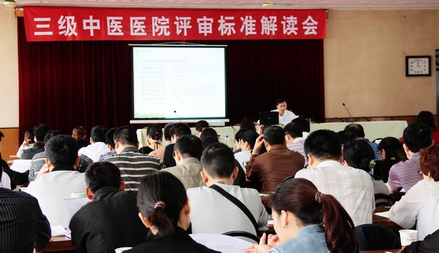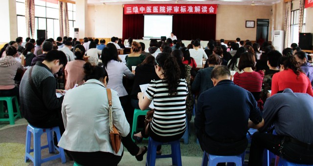 24日下午,我院召开了三甲标准解读会,这是22日继邀请上级领导解读标准会和9日三甲最后冲刺动员会之后本月召开的第三次关于三甲标准解读的大会。会议由院长杨正春主持,院班子成员、全院中层干部和各科室三甲资料准备员150余人参加。