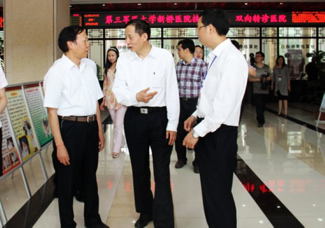 谢明道在市政协主席潘泽金、副市长石岷嘉等的陪同下视察我院马冲口门诊部