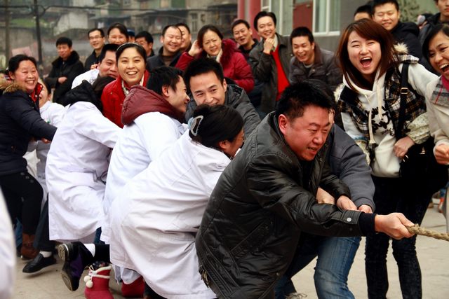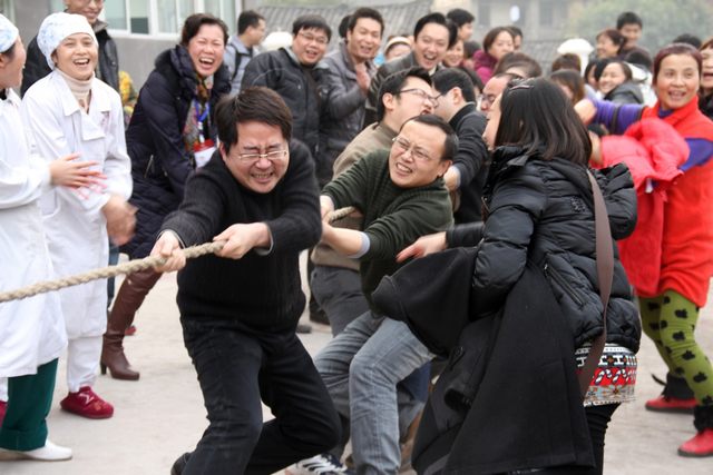 此次比赛共有六个工会大组的6支代表队参赛,实行三局两胜淘汰制,胜出者最后进行决赛。随着裁判一声令下,整个比赛场地立刻沸腾了起来,加油声、欢呼声此起彼伏,激荡人心,气氛紧张、激烈、有序。每组队员心往一处想,劲往一处使,个个精神抖擞,他们紧紧抓牢手中的绳子,勒绳下腰,降低重心,齐心协力!充分展现了中医院人斗志昂扬、力争上游的精神风貌。拉拉队员们卯足了劲拼命呐喊,住院的患者以及周围的居民也被热烈的气氛感染,纷纷到现场为参赛队员加油助威。各参赛队全力以赴,你争我夺!拔河过程中,有的僵持不相上下,许久才得以分出胜负;有的“不堪一击”,数秒钟就败下阵来。但是无论输赢,大家都发扬了“友谊第一,比赛第二”的风格。