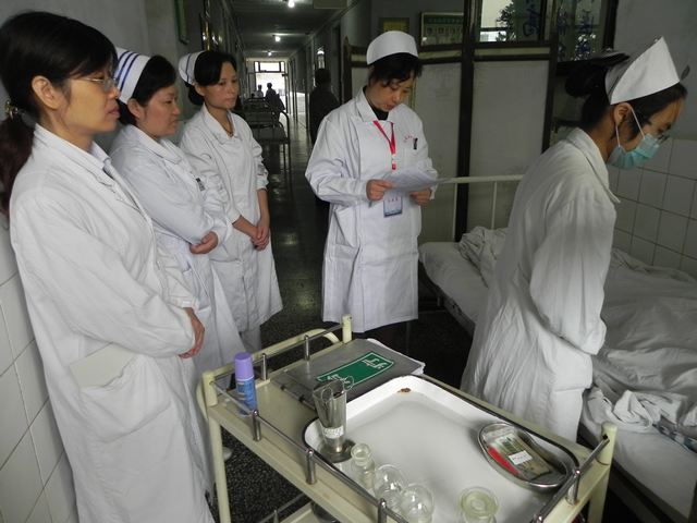 陈晓蓉主任(左四)现场考核护理人员