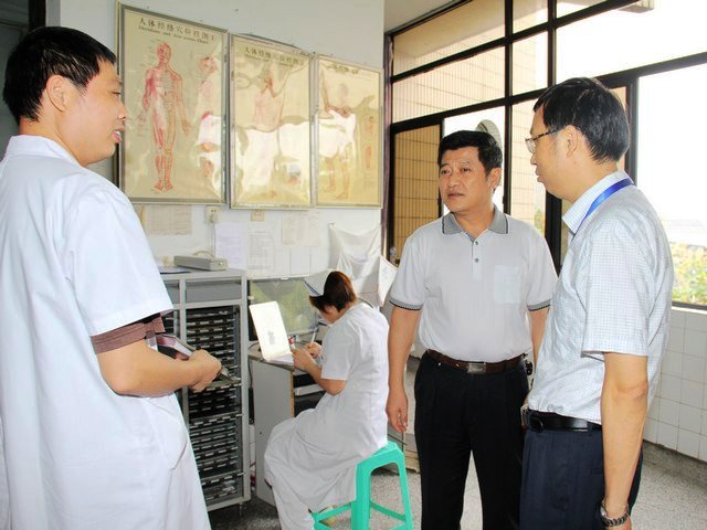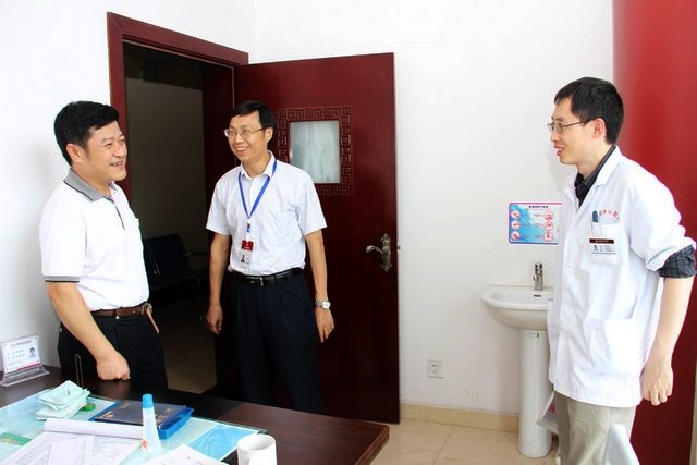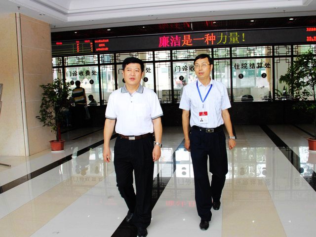 王书记一行先后视察了我院重点专科肛肠科和针灸推拿科,指出医院要继续发挥中医药特色优势,突出中医特色,夯实西医基础,走中西医结合的发展道路,形成差异化竞争优势;随后王书记又来到重点工程新建业务大楼,重点视察了投入使用后的门诊部,亲切慰问门诊医务人员。他对重点工程项目极具中医文化的装修风格给予高度评价,对便捷的“门诊挂号-住院收费-医保、新合一体化”服务流程表示肯定,对正在紧锣密鼓完善中的层流手术室提出加快进度的要求。视察过程中王书记特别强调医院安全工作:一是要努力提高职工安全防范意识,保障医疗安全,使医院医疗环境保持稳定;二是构建和谐医患关系,坚持以病人为中心,做到“三好一满意”;三是严厉打击医闹,保持高压态势,确保广大群众的生命健康安全。