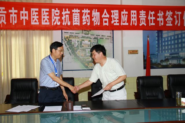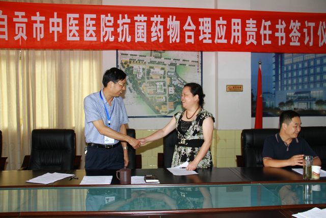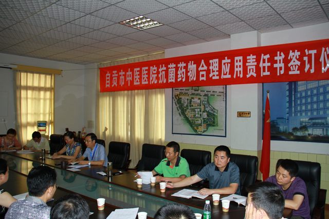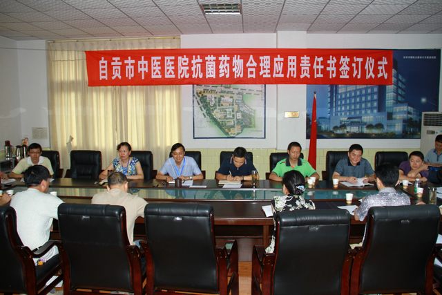 我院为了贯彻落实深化医药卫生体制改革,结合《四川省抗菌药物临床应用专项整治活动实施方案》及《自贡市2011年抗菌药物临床应用专项整治活动方案》要求,完善抗菌药物临床应用管理长效机制,提高抗菌药物临床合理应用水平,杜绝不合理使用及滥用抗菌药物现象,保障患者合法权益和用药安全,实现为人民群众提供安全、有效、方便、价廉的医疗服务的医改目标。特制定《抗菌药物合理使用责任书》,并于2011年8月2日在第一会议室举行签字仪式。