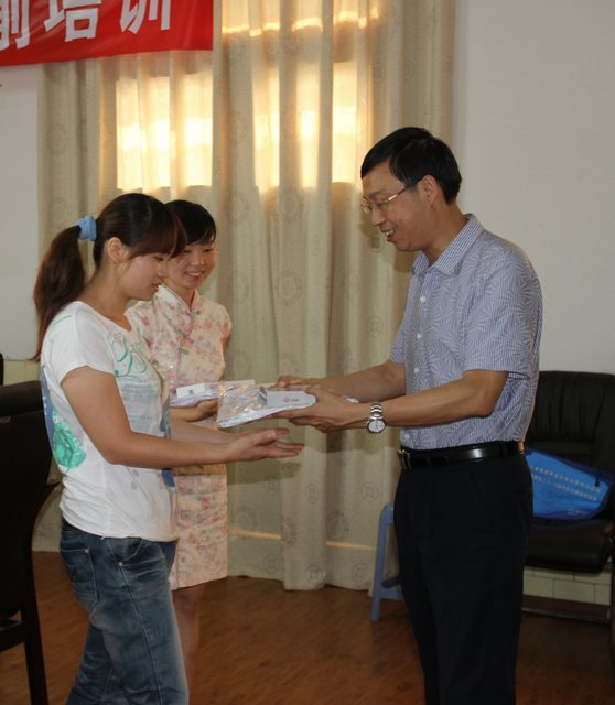 杨正春院长为新职工发放工作服、工作牌和听诊器