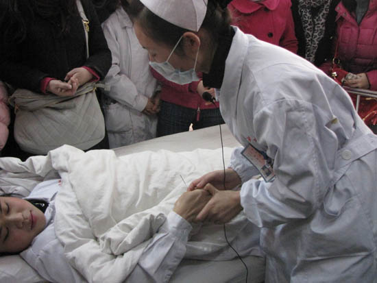 为使全院护理人员熟练掌握中医操作技能,丰富中医护理知识,我院近日在全院护理人员中开展了学习中医护理知识活动,活动分为中医操作示范讲解和中医理论知识学习两部分。示范操作中,示范人员现场以真人模拟形式对针刺法、灸法、拔罐法、穴位按摩法、耳穴压丸法、中药灌肠等中医护理常用操作进行示范讲解。护理部要求各科室对示范操作内容反复练习,人人熟练掌握,自行组织学习中医护理常规、技术操作规程、中医皮肤科护理常规、专科单病程护理常规等中医护理知识,提高中医护理质量。