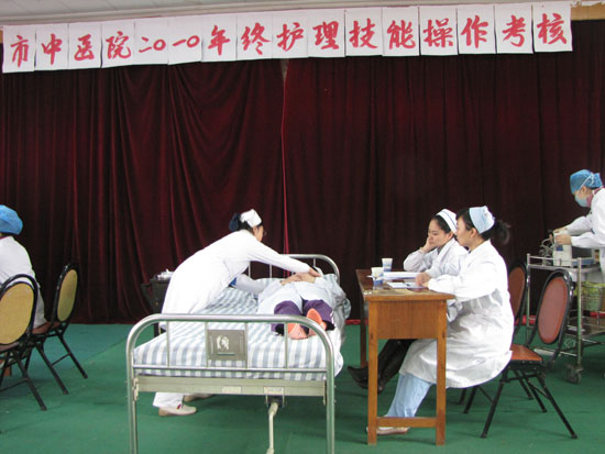 为提高全院护理急救操作技能,优化服务质量,营造你追我赶的学习氛围, 11月3、4日在我院学术报告厅内举行了年终护理技能操作考试, 40岁以下的中级职称和中级职称以下护理人员150余人参考。