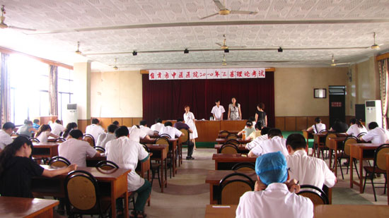 为努力打造学习型医院,培养勤学、好学的氛围。7月19日、20日上午,我院组织全院副高级以下的医、药、技近260人进行了“三基”理论知识考核。本次考核以临床、中医、中药、西药基本知识为主要内容,医院领导班子高度重视,全部到场监考,严肃考纪,力求人人过关,不走过场。以此提高医务人员业务素质,从根本上保证并提高医疗质量,防范医疗纠纷,更好的为患者服务。(图为医药技人员考试时场景。)