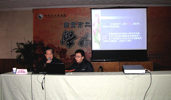 我院王荧副院长致欢迎词,自贡市中医药学会会长胡俊到会并作了讲话。此次学术研讨会目的在于增进各级医疗机构肛肠病专业人员之间的学术交流,建立互信,共同促进自贡市肛肠疾病学术技术的发展。我院肛肠科白衣康主任作了“PPH手术的运用体会”学术论文交流,会议还特邀全国中医肛肠学科名专家、四川省名中医、研究生导师、成都肛肠病专科医院院长杨向东教授,世界肛肠学会顾问、全国中医学会肛肠学会顾问、成都中医药大学附属医院肛肠科曹吉勋教授,中华中医药学会肛肠分会常务理事、中国中医药高等教育学会肛肠分会常务理事、四川省中医肛肠学会委员、成都中医药大学附属医院肛肠科科主任、硕士研究生导师黄德铨副教授到会作专题学术讲座,内容涉及国内外肛肠疾病治疗的新技术、新观点,同时还提出了许多中医中药在肛肠病领域研究的新进展。与会者一致反映本次会议组织严谨、学术气氛浓郁,对推动自贡市肛肠病专业方面的发展及新技术推广起到了积极作用。