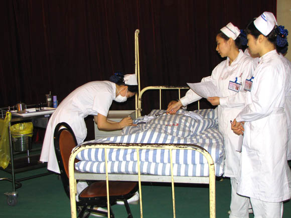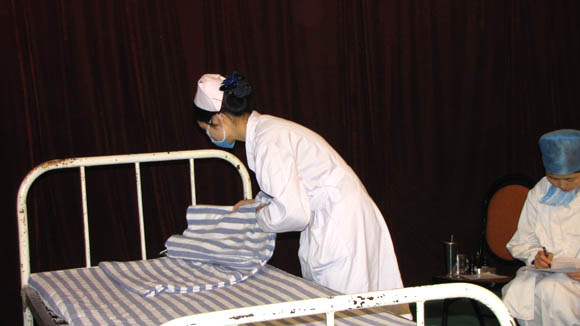 近日,我医院举办了2009年护理技能操作比赛。比赛项目包括:铺备用床法、毫针刺法。来自该院临床一线科室的28名青年护士参加了比赛。通过激烈的角逐,有6人以精湛的护理操作技术、良好的沟通技巧、沉着冷静的心理素质获胜。