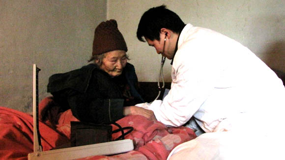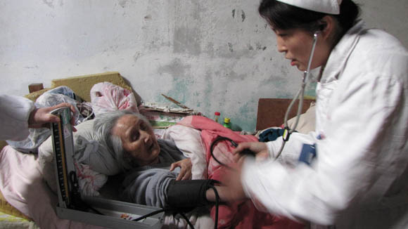 现场义诊活动结束后,志愿者们在马冲口社区主任的带领下,到社区居民黄学兰家进行上门服务。现年57岁的黄女士是焊条厂的一名退休职工,她收养了三名智障儿童和两名无依无靠的孤寡老人,她热心助人的高尚品德得到周围群众的好评。志愿者们对三个孩子和两名老人进行了全面检查,并给他们送去了药品,老人高兴地连声道谢。