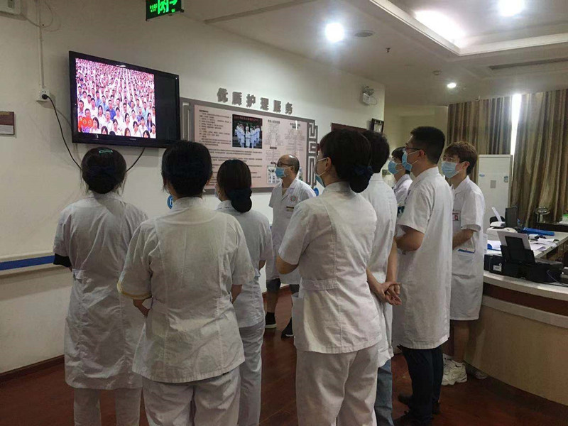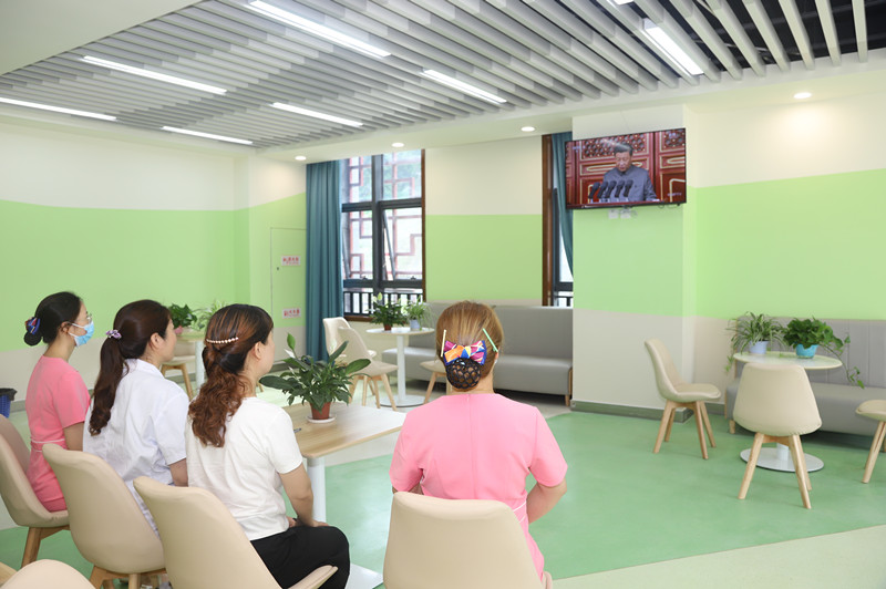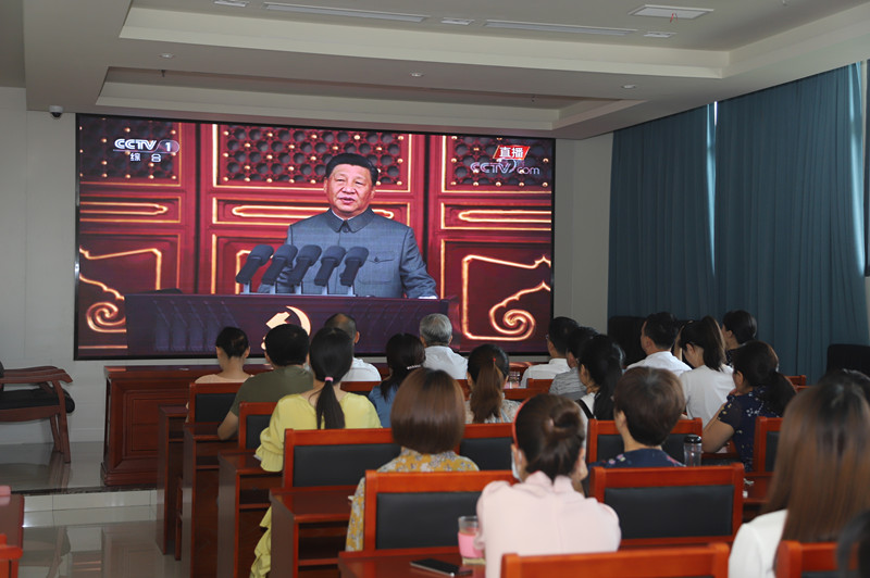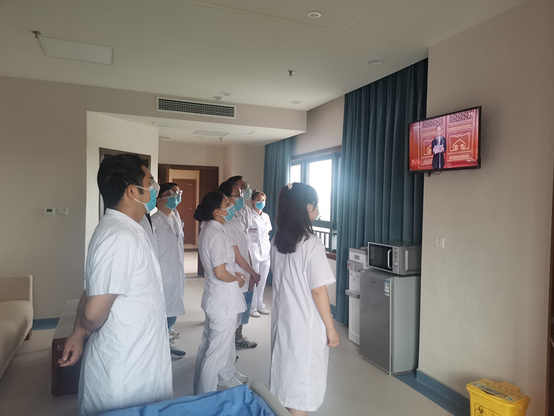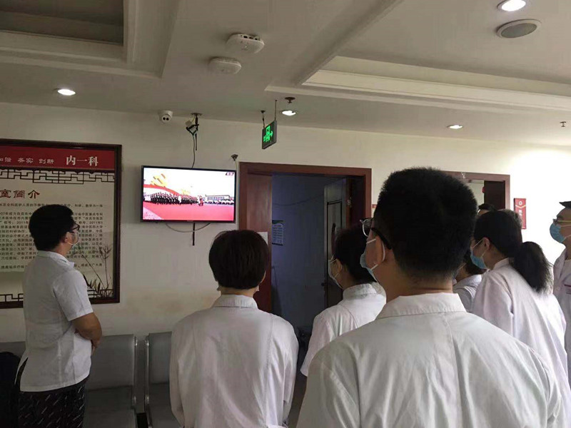 7 月 1 日上午 8 时,庆祝中国共产党成立 100 周年大会在北京天安门广场隆重举行。市中医医院党政领导班子、行政职能部门负责人集中组织观看,各支部、各临床科室根据自身工作实际,组织广大党员干部职工及患者收听收看庆祝大会直播盛况。