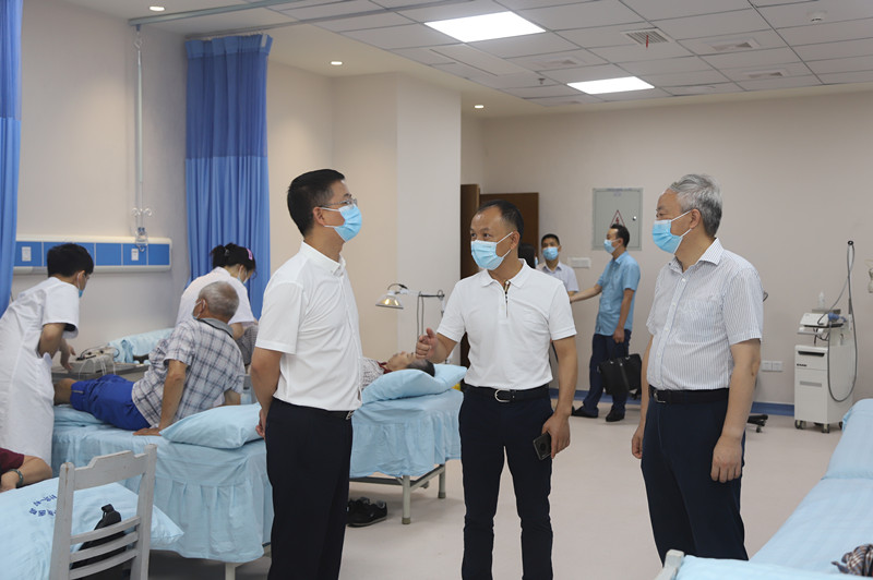 阮书记一行考察了卧龙湖医院一站式服务台、智慧药房、党员干部人才教育基地、中药材展览区、中医药展厅、针灸推拿中医综合治疗区以及肛肠科、肿瘤科等特色科室,途中就一站式服务台建设、中医特色技术开展和特色科室建设等进行了经验交流。