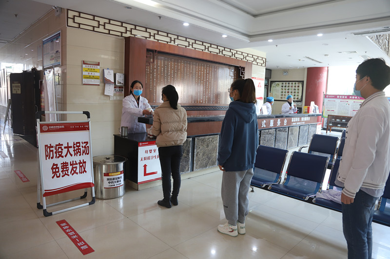 自疫情以来,市中医医院充分发挥中医药在新冠肺炎预防中的重要作用,研发有预防新冠中医药儿童处方、正常人群处方、体弱人群处方、重点人群处方及防流感香囊等,同时开通中药“大锅汤”配送服务,并免费向就诊患者及群众发放中药“大锅汤”。