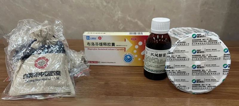 含:布洛芬胶囊(1盒)、成人防冠中药免煎颗粒(3盒)、防冠香囊(3个)、复方三匹风糖浆(1瓶)。