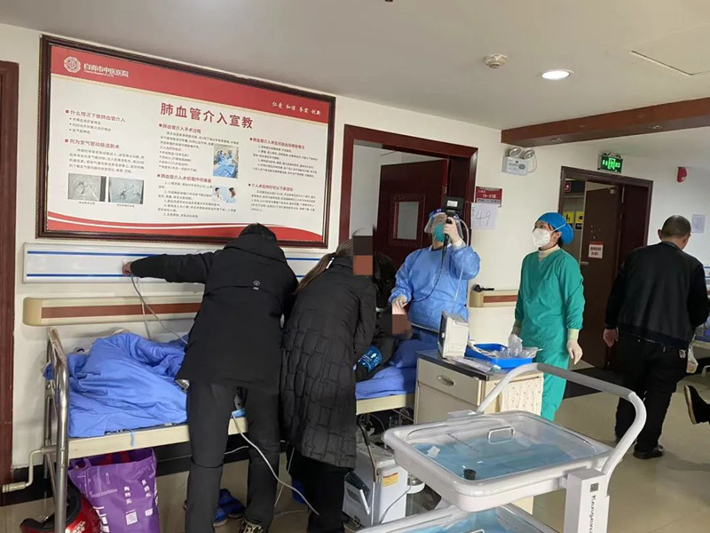 1月6日,24小时值班后的医生屈骄,仍坚持一早查房,中午还没来得及吃一口饭,又接着为患者做床旁纤支镜。