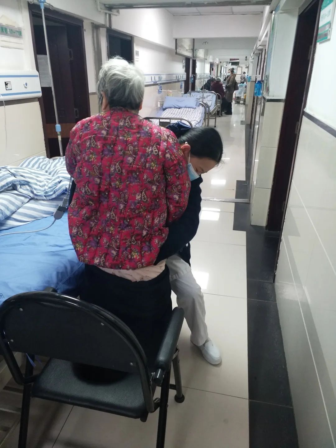 李艳安抚好刘阿姨后,转身回到护士站取来了坐便器,并用柔弱的身体小心翼翼地搀扶帮助刘阿姨完成大小便。