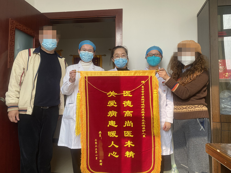 经医护人员的治疗和精心护理,目前王婆婆已好转出院,家属特意送来锦旗表达谢意。