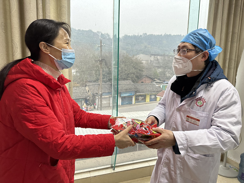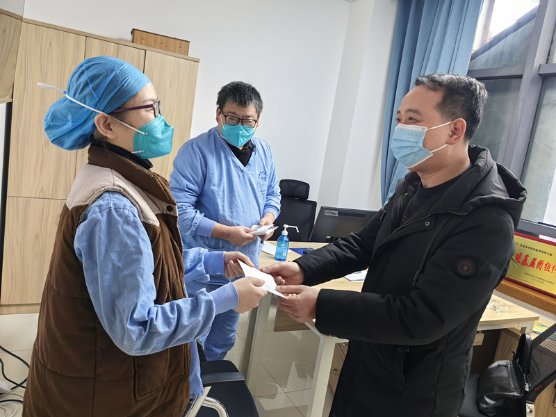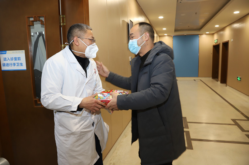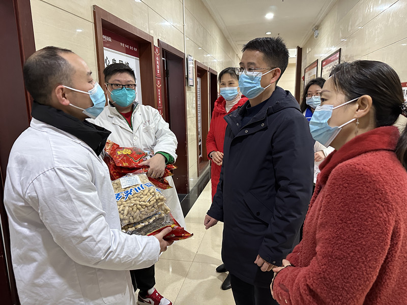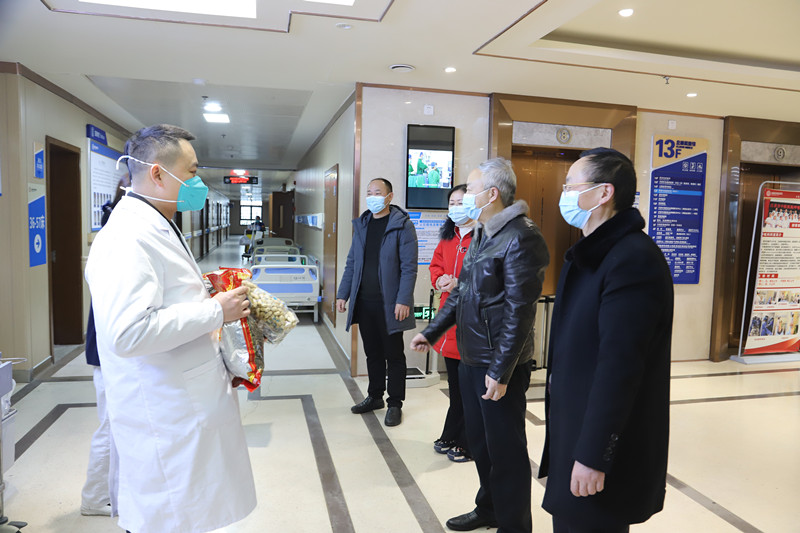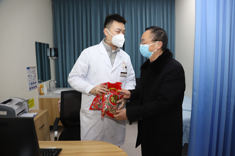 每到一处,院领导们都与医务人员亲切交谈,向他们送上慰问品,祝福他们新春快乐、身体健康、过一个喜庆祥和的春节。