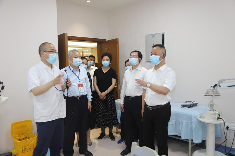 范奇元一行先后到卧龙湖门诊大厅、中药展厅、中医综合治疗区、检验中心、健康管理中心、中医特色重点建设项目等场所实地调研,听取有关情况介绍,详细了解了医院发展规划情况。