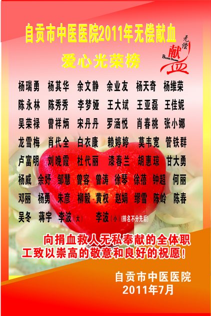 7月15日上午8时许,市中心血站流动献血车驶入我院体检中心大院,拉开了本次无偿献血活动的帷幕。献血活动井然有序,一股股饱含爱心的涓涓血流,反映出中医院人的无偿奉献精神以及道德素质的升华,是构建和谐社会的具体体现。“点点滴滴热血浓,人道博爱处处情”是整个活动的真实写照,献血的职工体现了当代中医院人的人道博爱、关心社会、关心他人的精神风貌,在职工当中树立了榜样,为社会奉献了爱心。据悉,当天共有52名职工参加了献血,献血量达15500毫升;鲜红的血液里承载着浓浓的爱心,印证我院广大职工对生命的关爱,弘扬了无偿献血崇高的人道主义及奉献精神。大家表示,还将一如既往献出自己的热血和爱心。