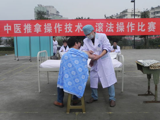 10月30日,由市卫生局、市中医药管理局主办,市医学会承办的2010年卫生专业技术人员技能操作比赛在自贡卫生学校隆重举行,来自全市26家医疗单位的230名选手参加了比赛。比赛项目包括护士职业礼仪、颈椎损伤的固定与搬运和中医推拿操作技术——滚法操作三项。我院选派了4组共14名选手参赛,其中针灸推拿骨伤一科张红与王大斌以其娴熟的技术、规范的操作获得了中医推拿操作技术——滚法操作比赛的一、二等奖,参加护士礼仪比赛的选手们也以其自信的面貌、优雅的举止、标准熟练的礼仪动作在比赛中脱颖而出夺得三等奖。赛场上,我院参赛选手们在紧张、有序、充满激情与挑战的气氛中,沉着应对,动作熟练,充分展现了我院医护人员良好的业务素质和精神风貌。