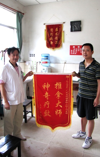 8月26日上午,病人雷梅及其丈夫将一面印有“推拿大师、神奇疗效”的锦旗送到我院针灸推拿三科副主任医师吴瑷的手中,感激的神情溢于言表:“真是太感谢您了,解除了我的痛苦,让我获得了第二次生命”。