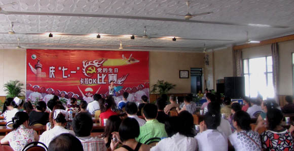 6月30日,在医院学术报告厅举行了庆七一卡拉OK比赛。来自七个支部的21名选手参加了此次比赛。参赛的曲目都是经过选手们认真挑选、精心准备的,选手们以最佳状态投入比赛,展现自我。他们用歌声为祖国祝福、为党祝福、为我们的和谐明天祝福。整场比赛气氛活跃、高潮迭起,场面非常热闹。最后,外科支部的李珍珍等十位同志以独特的演唱技巧和观众亲和力获得医院十大歌手称号。