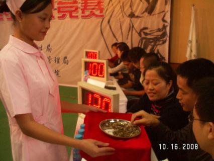 市卫生局、市中医管理局陈张铭副局长莅临比赛现场并发表了重要讲话,他说:中医药在社会主义现代化建设中发挥了越来越重要的作用,中医药已经不仅仅是用来治病,而且还被用来预防疾病,希望我们的中医药人努力提高中医药理论和技术水平,为促进我市中医药事业的发展做出贡献。