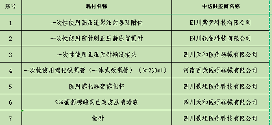 自贡市中医医院耗材招标结果公示