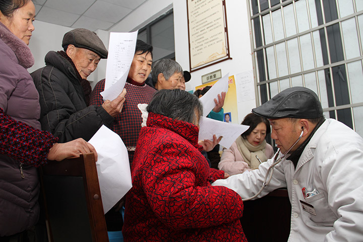 “平时肩膀要作举高运动,晚上睡前搭哈热敷”、“血脂高的话,平时少喝点酒、少吃点肉”、……随着义诊活动的开始,闻讯而来的村民们也逐渐增多,医护人员们各司其职忙碌起来。填写健康档案,内科检查,测血压,心电图,B超……现场人虽多,但各项义诊工作井井有条,紧张而有序的进行着。
